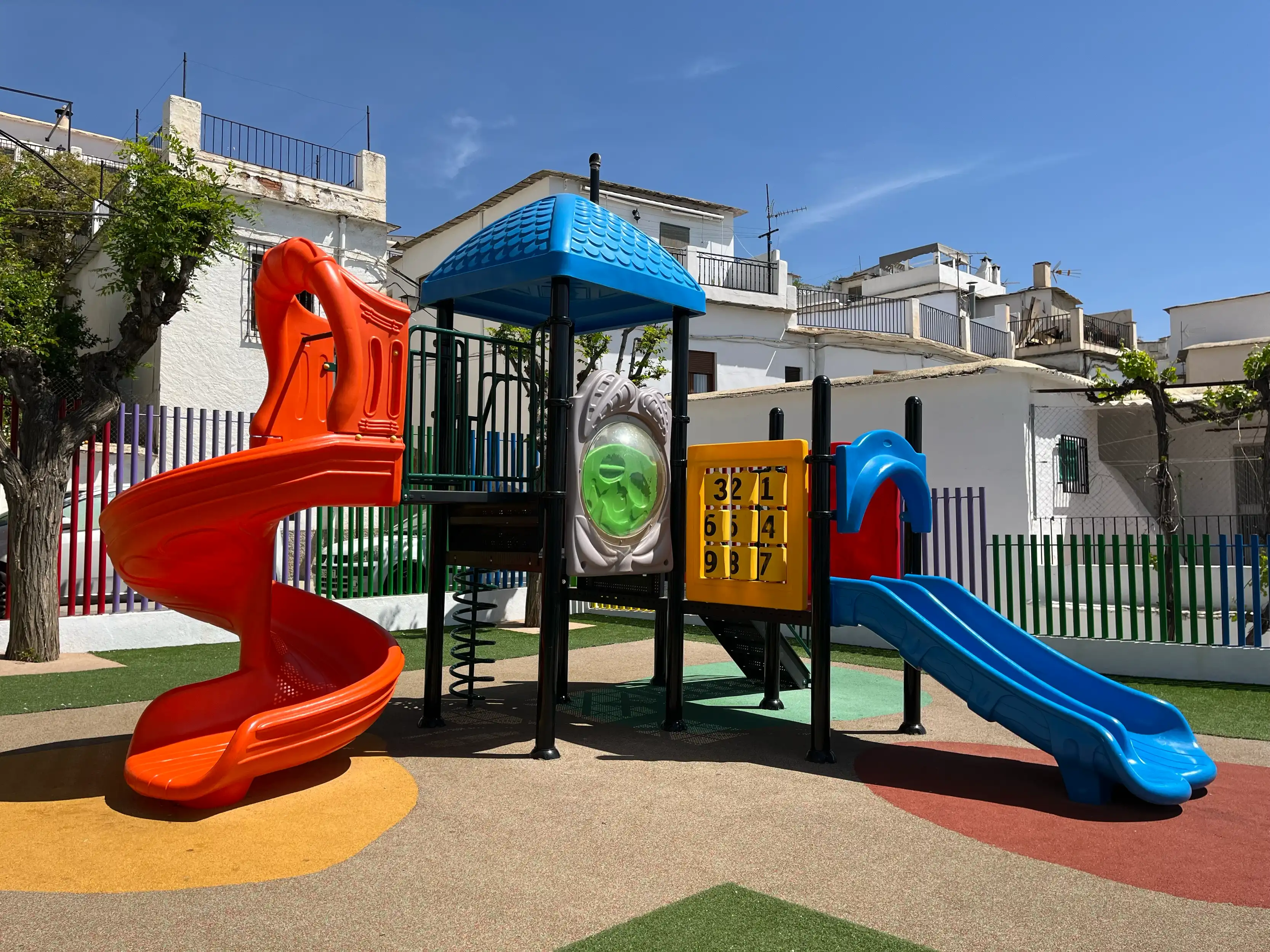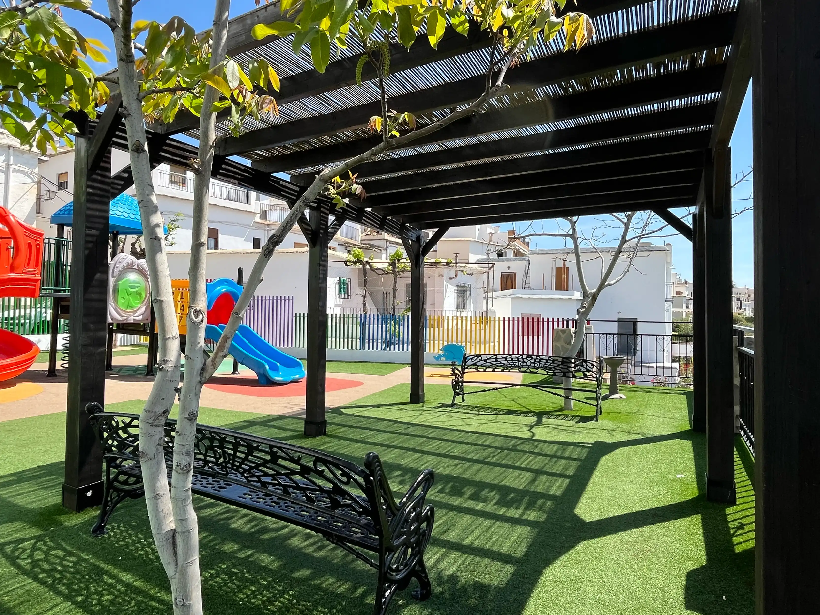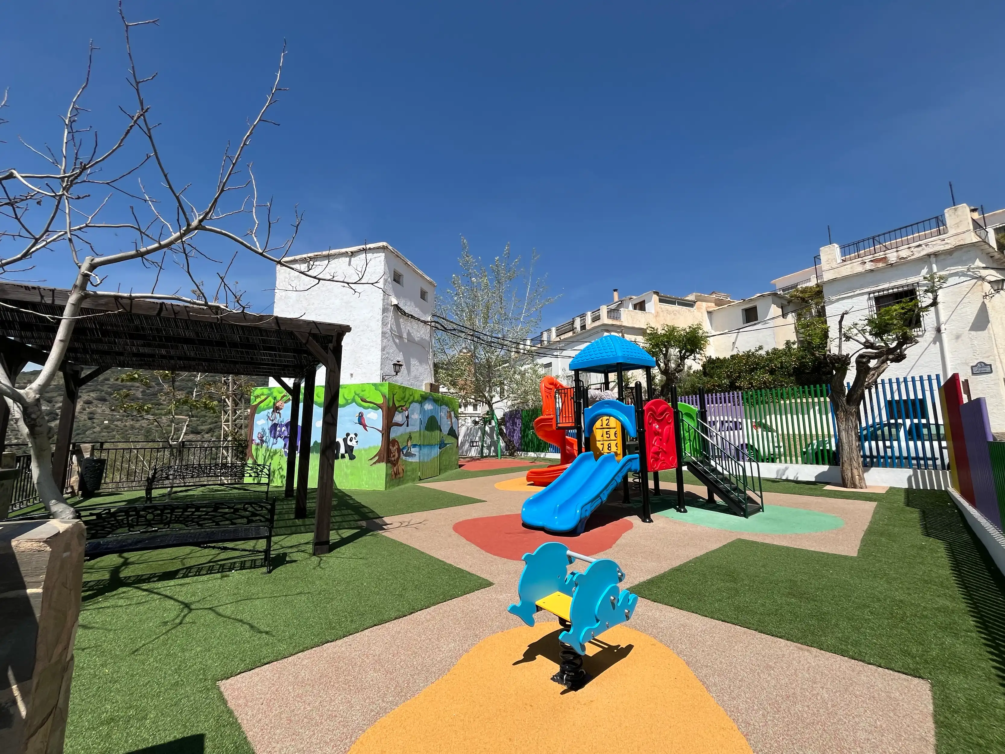 Parque infantil situado sobre el lavadero del Mercadillo en Laroles.