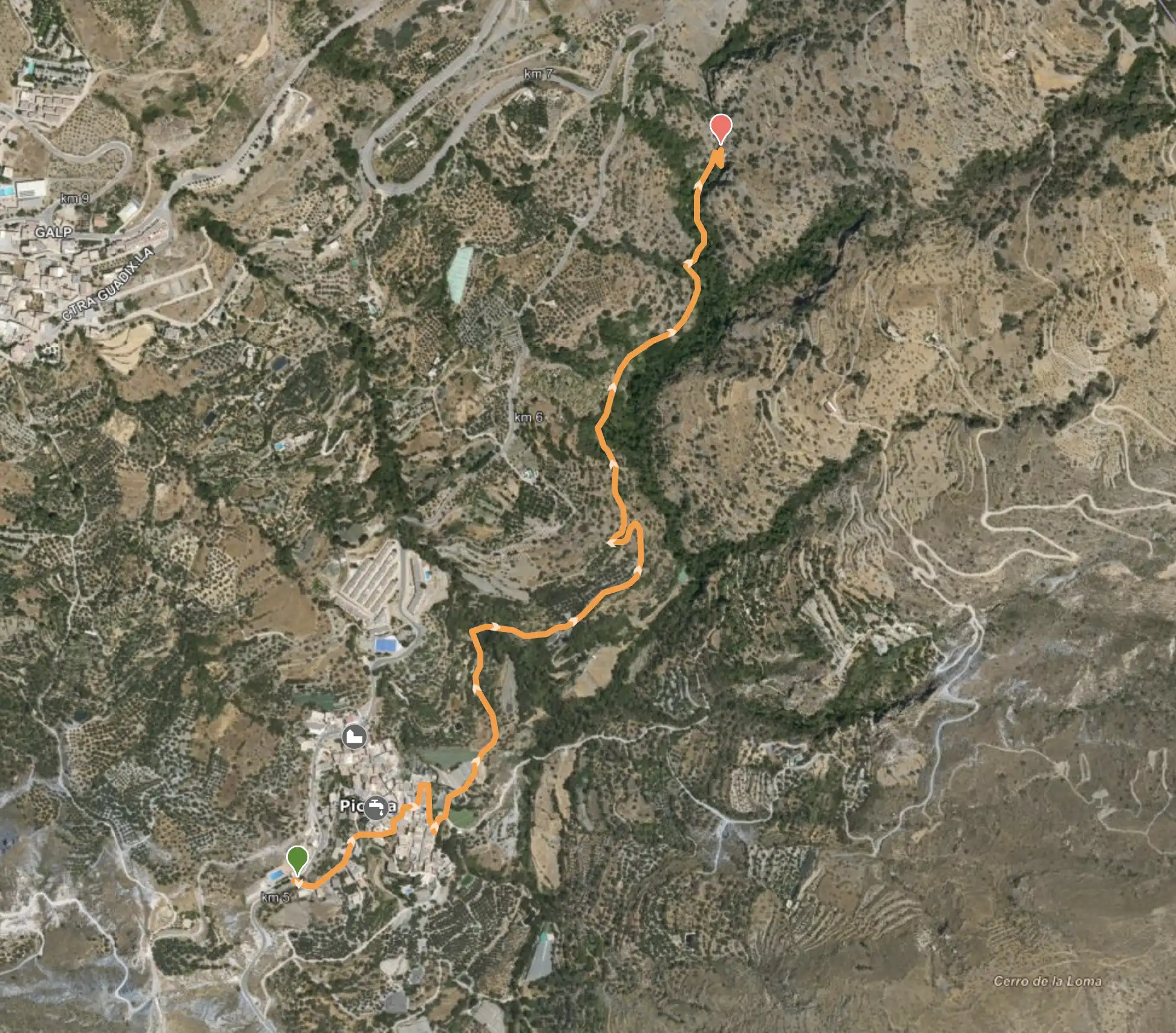 El sendero comienza en Picena, donde bajaremos hasta el lavadero para continuar subiendo al lado del Río Picena junto a huertos, olivos y frutales. Al llegar a la acequia la vegetación comienza a ser más frondosa con grandes árboles. Llegaremos hasta el puente colgante, donde encontraremos una antigua estación hidroeléctrica: La Fabriquilla. Desde aquí, podremos ver el Balsón de Picena. Una profunda balsa natural con agua fresca y cristalina.