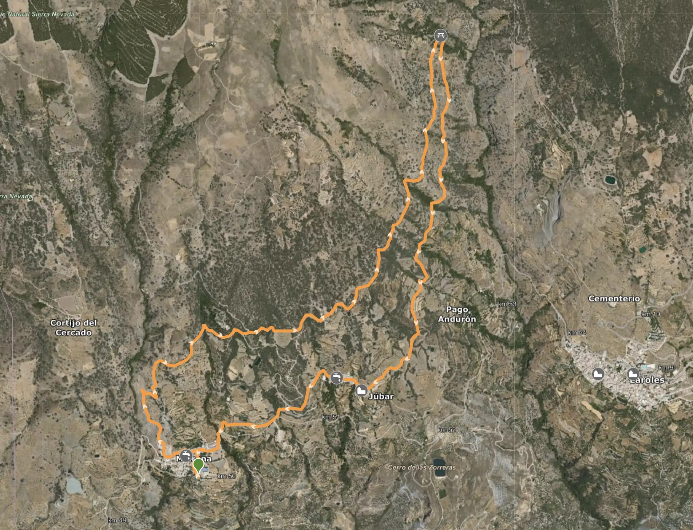 El sendero comienza en la entrada de Mairena. Se asciende por el casco urbano hasta llegar a las Eras de Mairena, donde se continúa junta a la Acequia Real de Mairena. Disfrutaremos de unas magníficas vistas de La Alpujarra y la Sierra de La Contraviesa. Pasaremos por el Castaño Milenario, lugar ideal para descansar. La ruta desciende dirección Júbar hasta conectar con el sendero GR7, por el cual retornaremos hasta Mairena por la carretera.